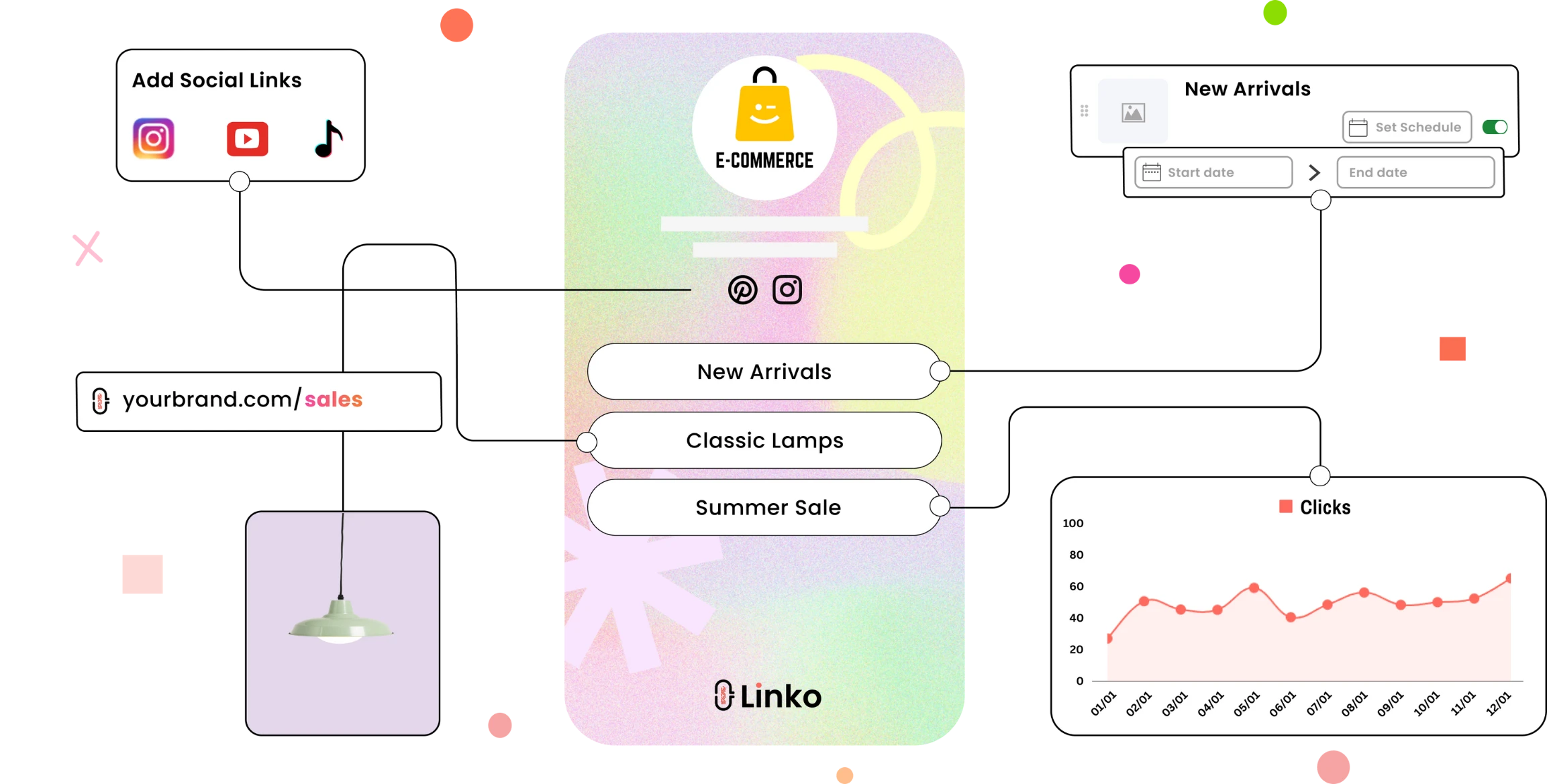 Turn your bio link into a mini-storefront, showcasing your top products, promotions, and social channels in one click.